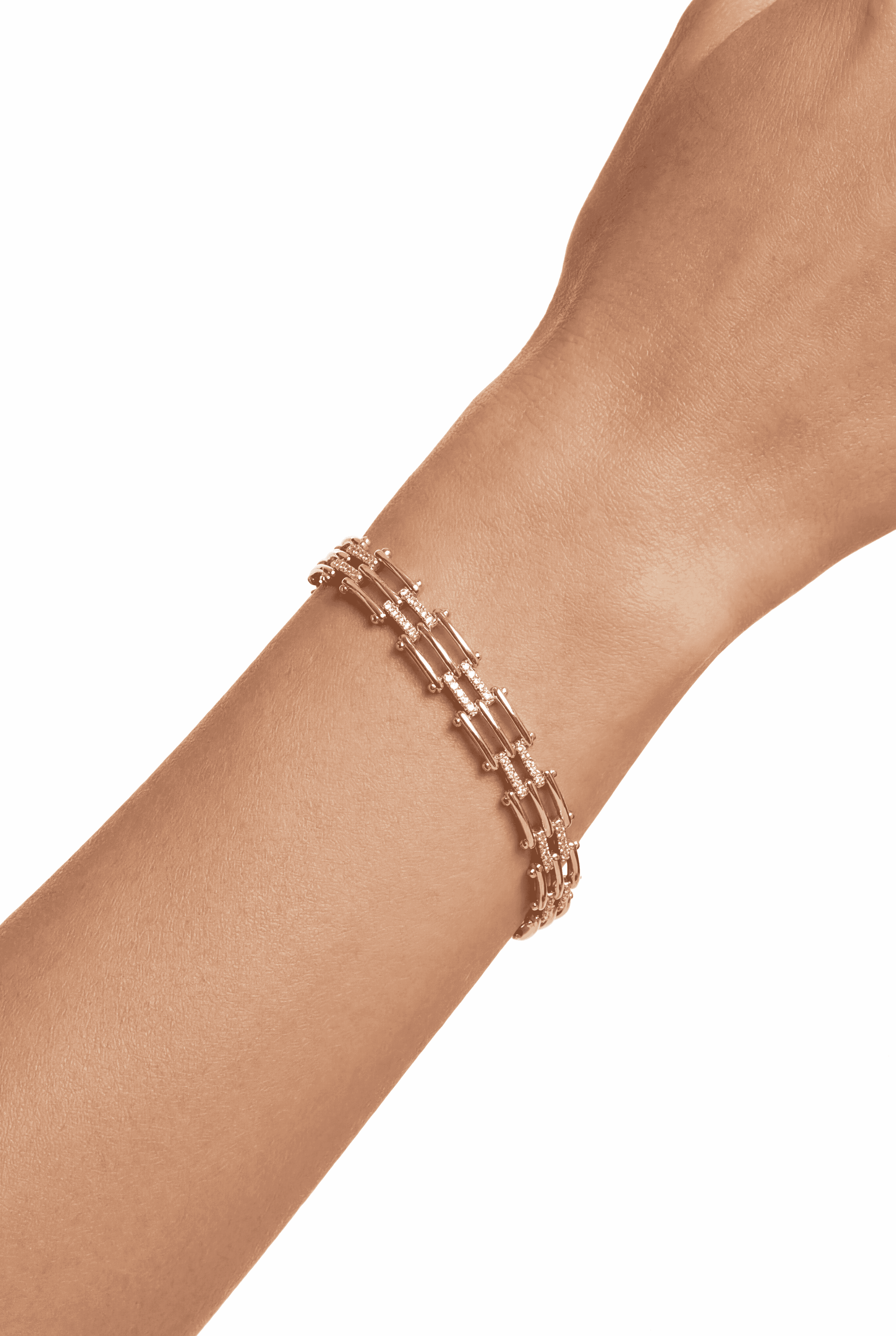 Víceřadý náramek s kameny vytvářející bohatý, luxusní vzhled. Ideální pro výrazné večerní kombinace.